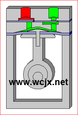 简单的来说是:电机的圆周运动,通过机械装置使泵内部的隔膜做往复式运动,从而对固定容积的泵腔内的空气进行压缩、拉伸形成真空(负压),在泵抽气口处与外界大气压产生压力差,在压力差的作用下,将气体压(吸)入泵腔,再从排气口排出。示意图如下: