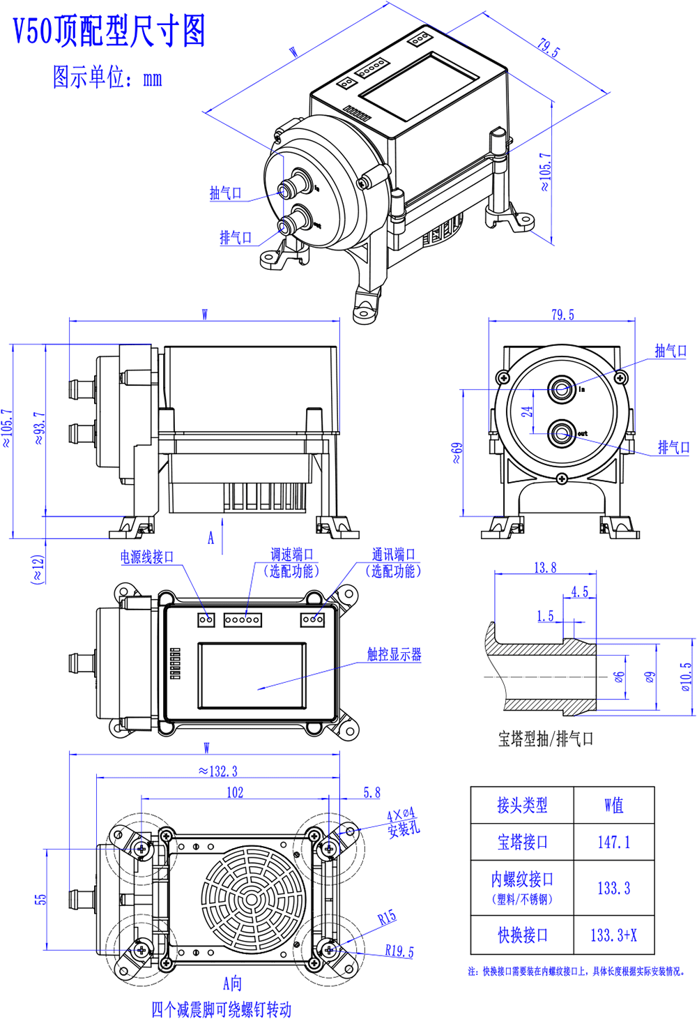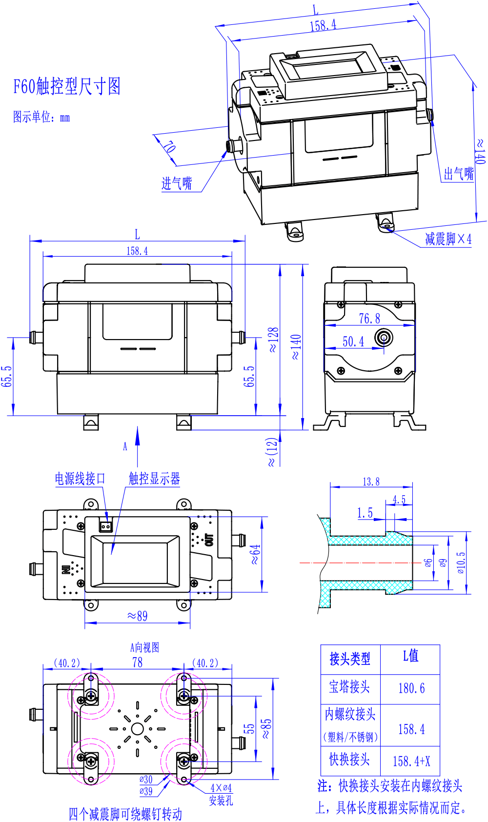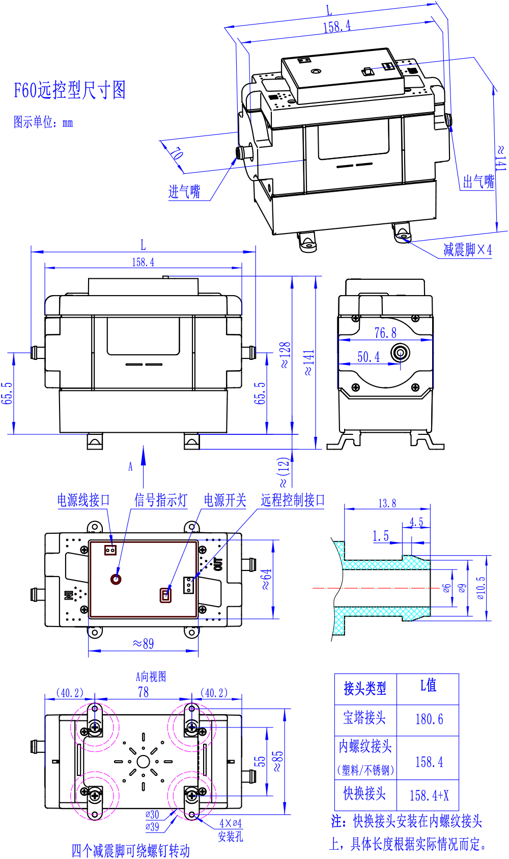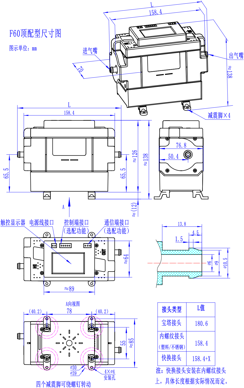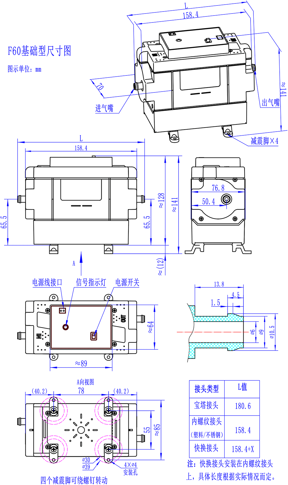 F60系列无刷微型气泵-4种型号外形尺寸图(以下图示单位:mm)