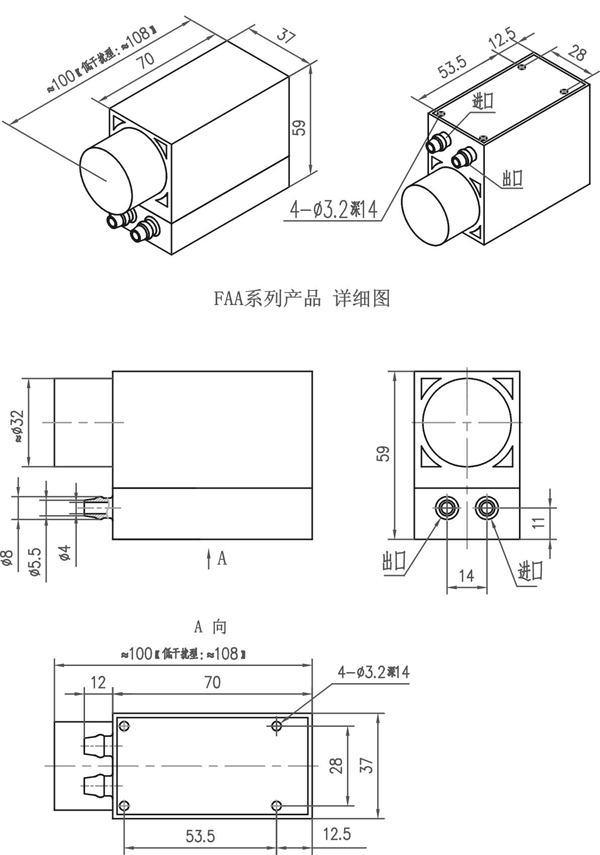 1.FAA系列微型真空泵-外形尺寸图(以下图示单位:mm)