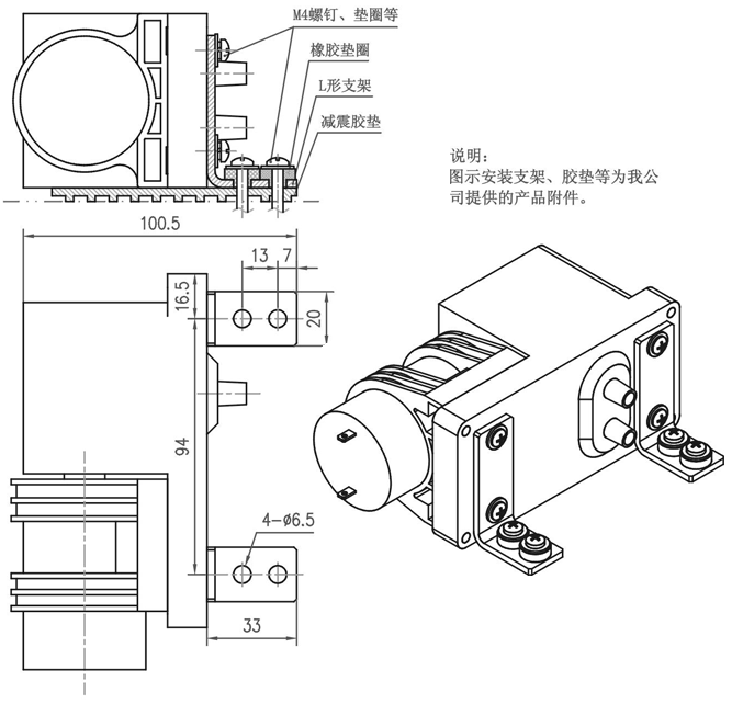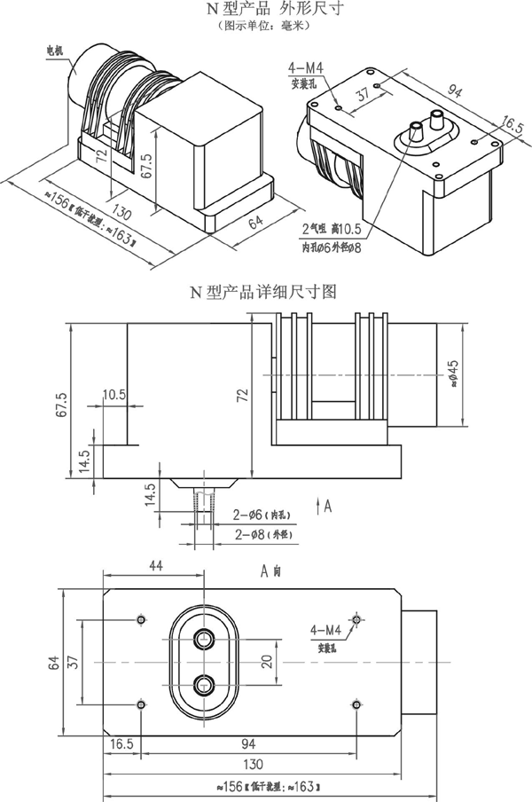 2.PC系列N型 微型真空泵外形尺寸图(以下图示单位:mm)