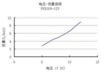 二、微型真空泵PK系列,电压-流量曲线: