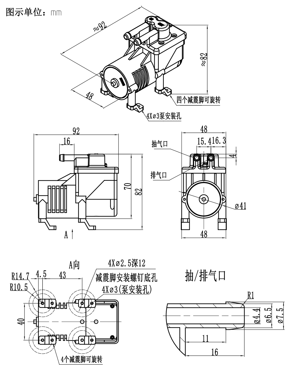 3、当抽取有害气体时,客户必须对泵进行再次密封,确保安全!