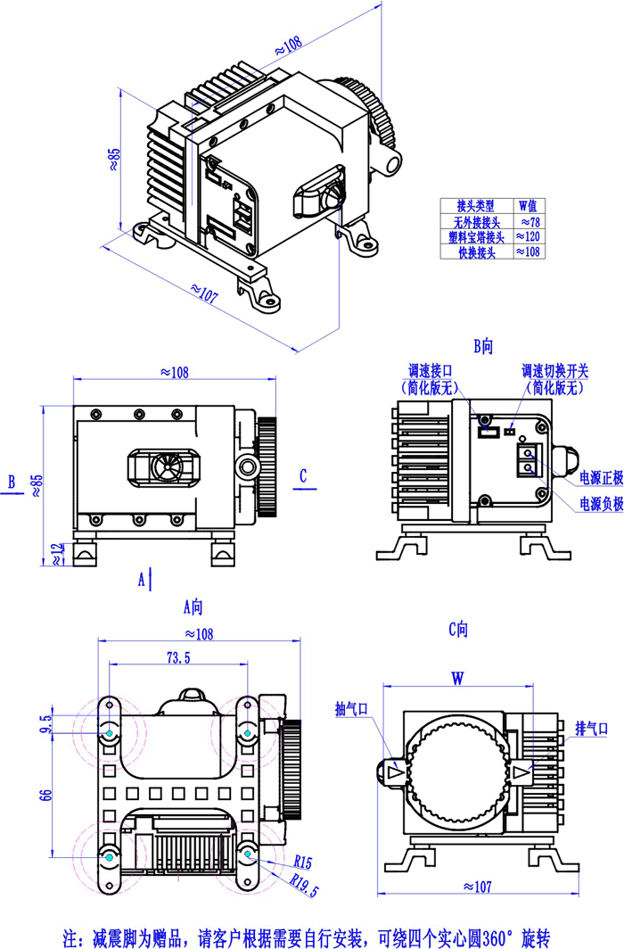 3、当抽取有害气体时,客户必须对泵进行再次密封,确保安全!