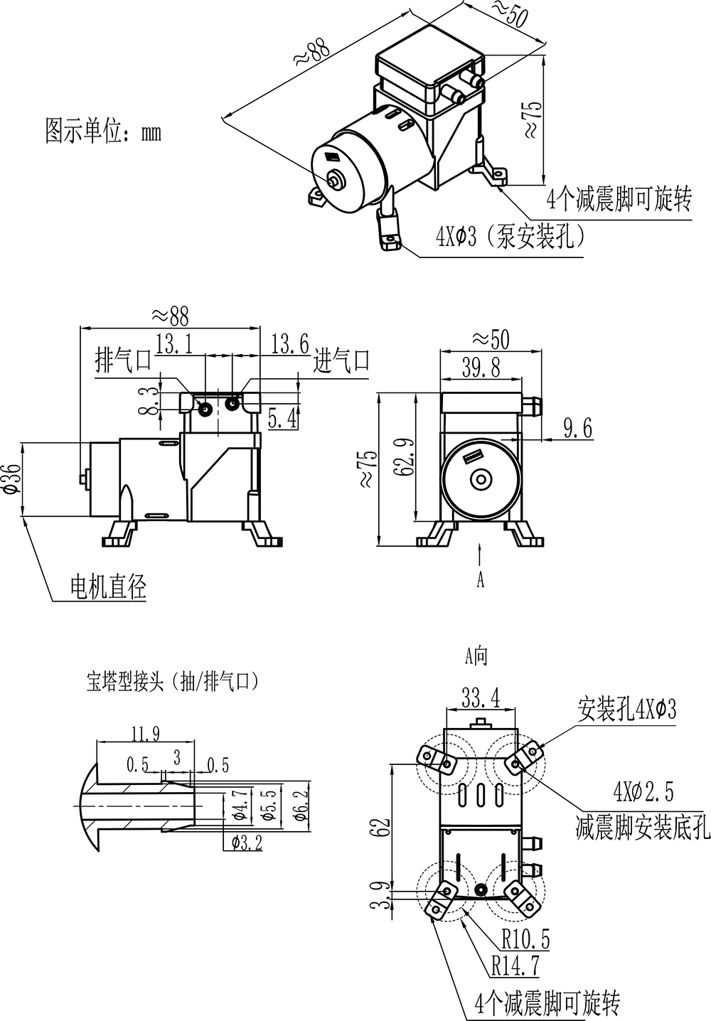>微型自吸水泵金属底座BSP-T