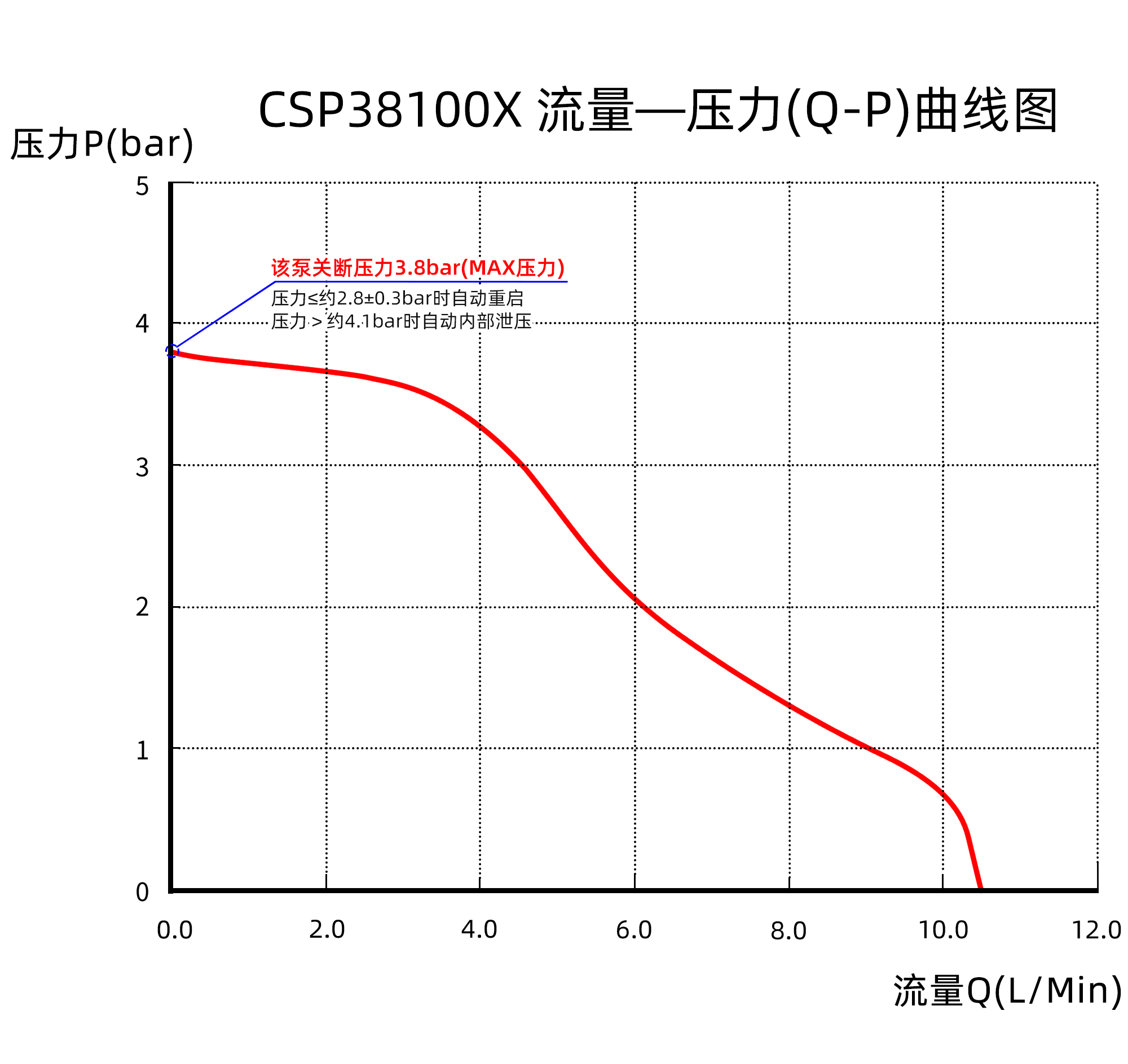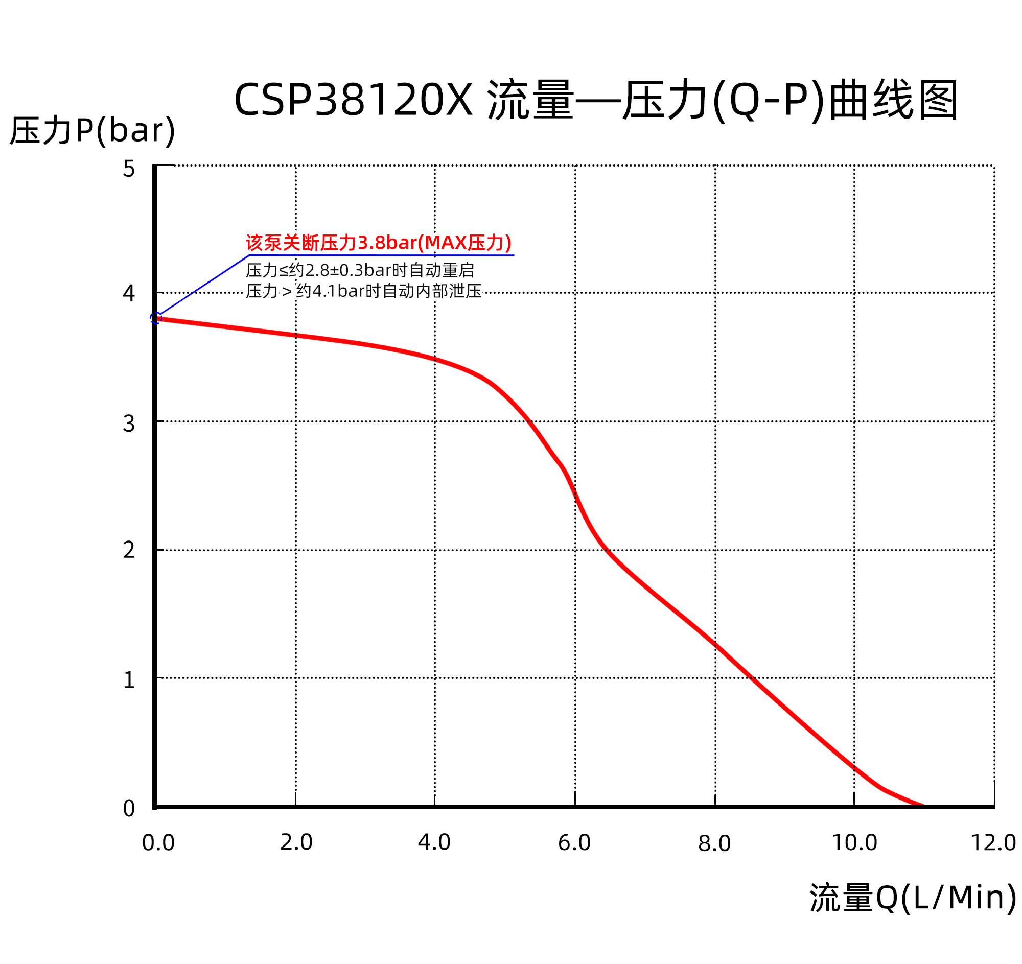 微型自吸水泵CSP38120X流量-压力(Q-P)曲线图: