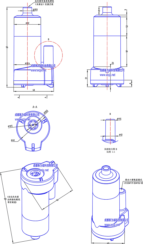 新为诚QX系列微型小流量潜水泵-外形尺寸图(以下图示单位:mm)