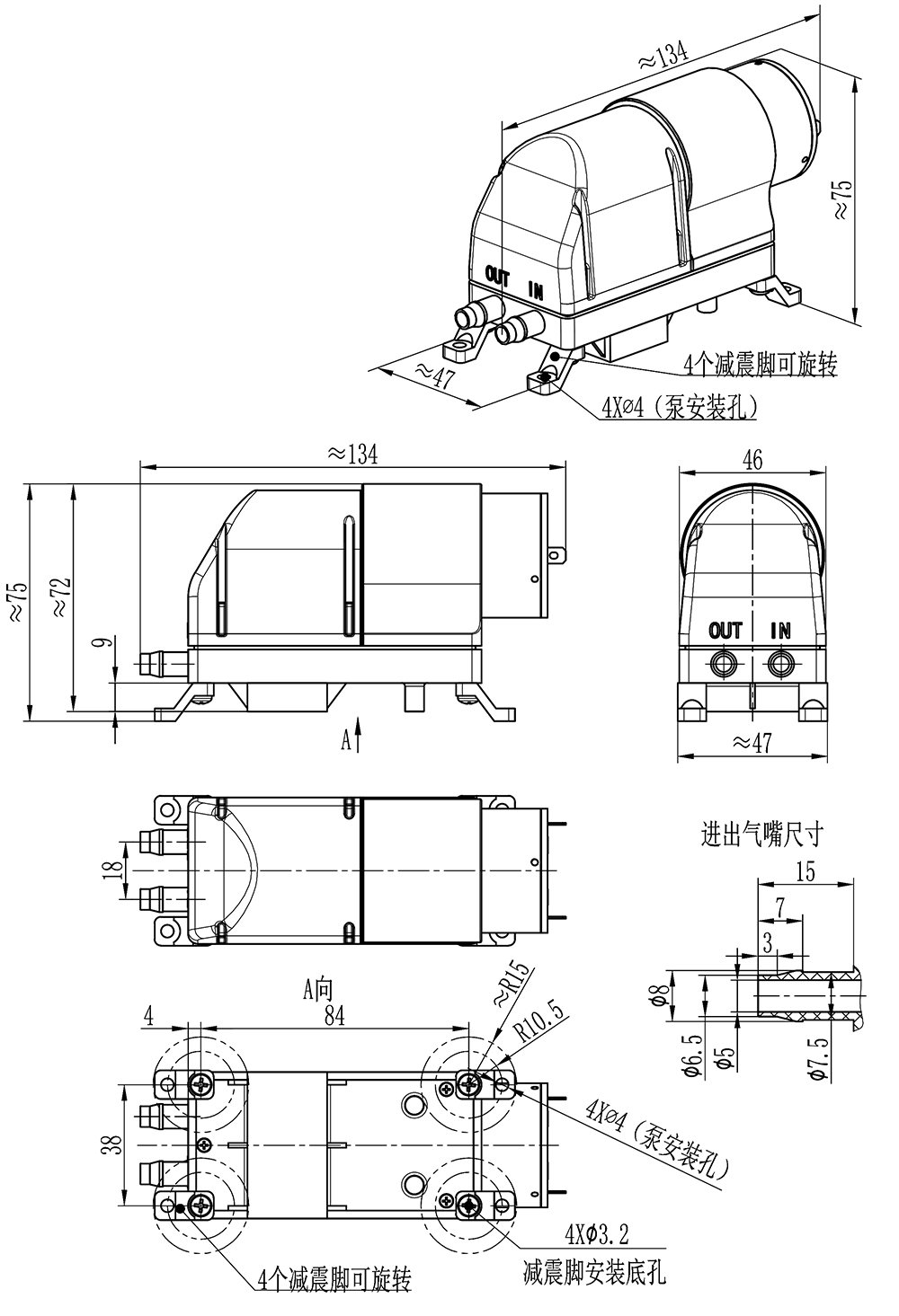 SWKA系列调速微型水泵-外形尺寸图(以下图示单位:mm)