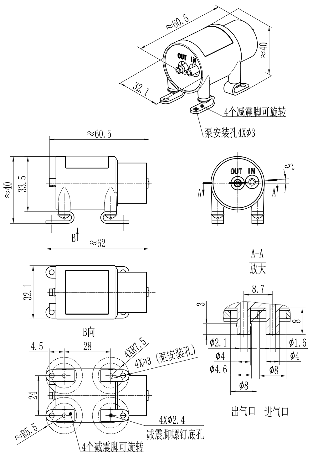 2.异物不得落入气咀,否则将损坏微型泵!