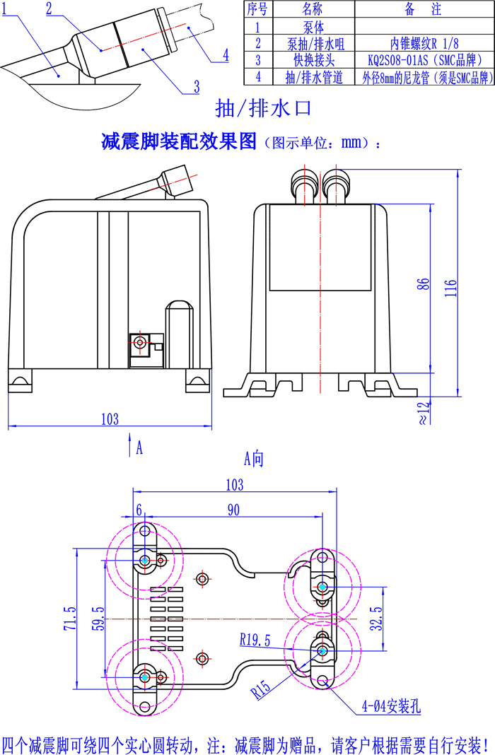 (2)作水泵使用时,排水口只可短暂(≤10分钟)堵死或短暂带大负载,长时间堵塞或大负载会损坏微型泵,将导致正常保修失效!