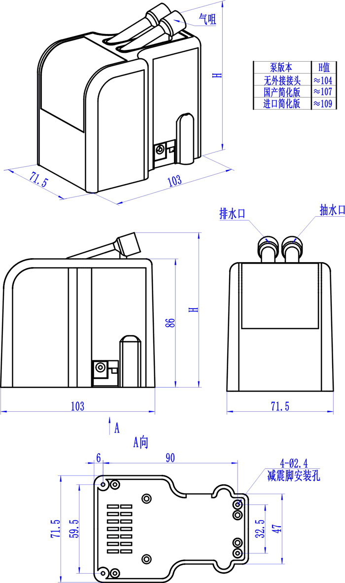 WJY系列微型真空水泵-外形尺寸图(以下图示单位:mm)