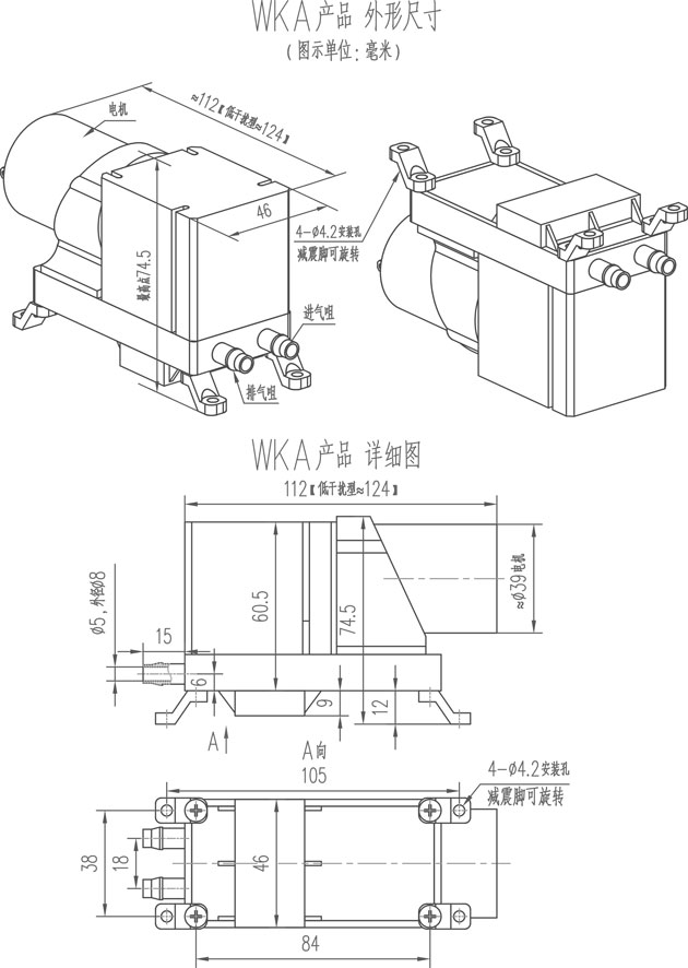 WKA系列 微型真空泵、微型水泵-外形尺寸图(以下图示单位:mm)