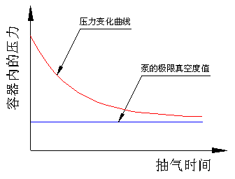 由此可以看出,在抽气初期,容器内压力下降(即:真空度的提高)很快,而后呈指数关系衰减,越来越慢,并无限逼近泵的极限真空度值。