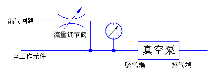 通过调节漏气回路中的流量调节阀可以改变气体泄漏量,从而改变吸气端回路的真空度,当然流量也会改变。