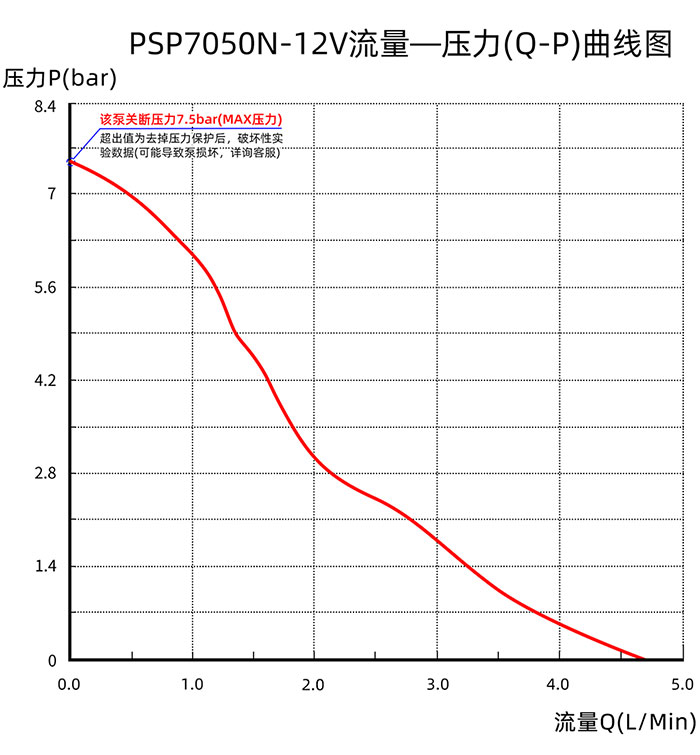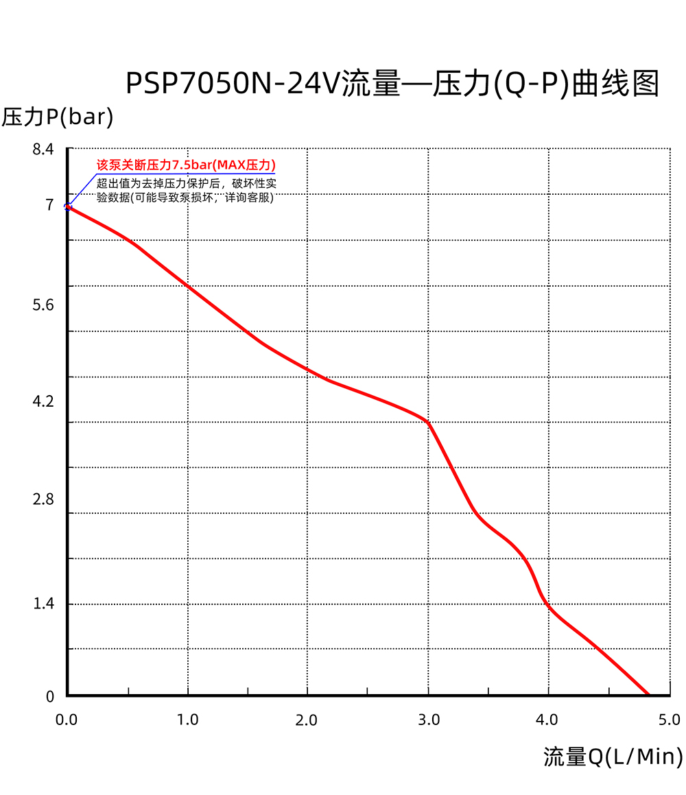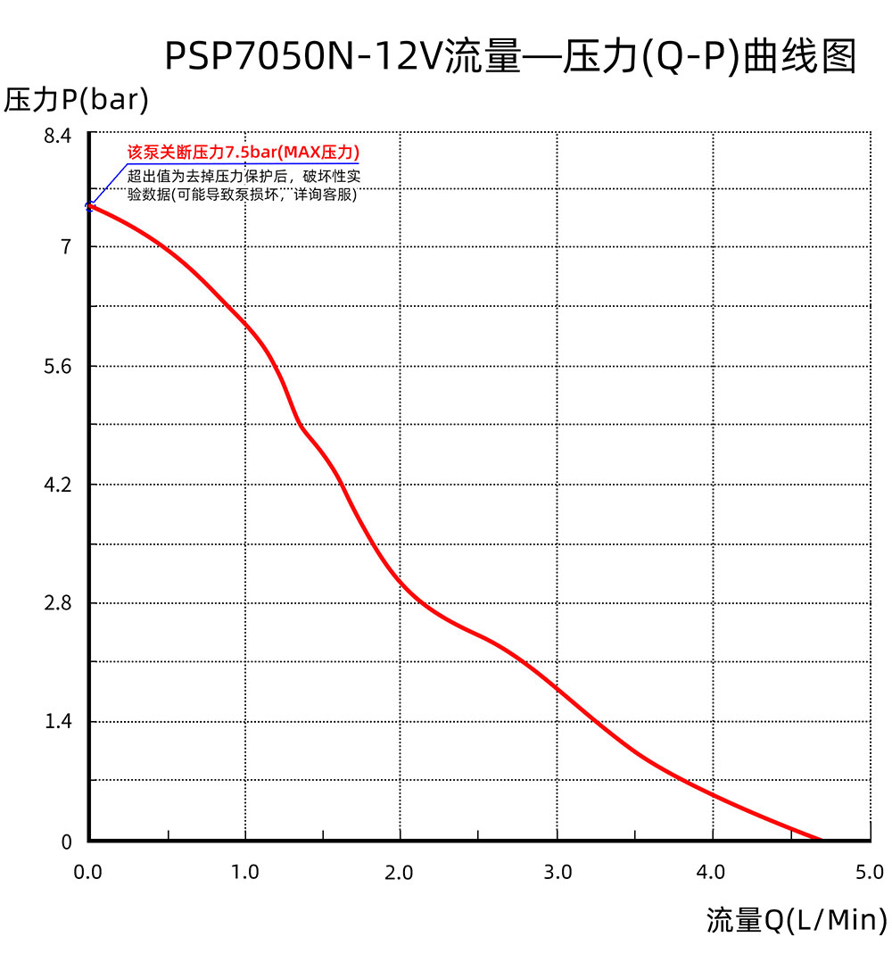 PSP-N-12V流量-压力(Q-P)曲线图: